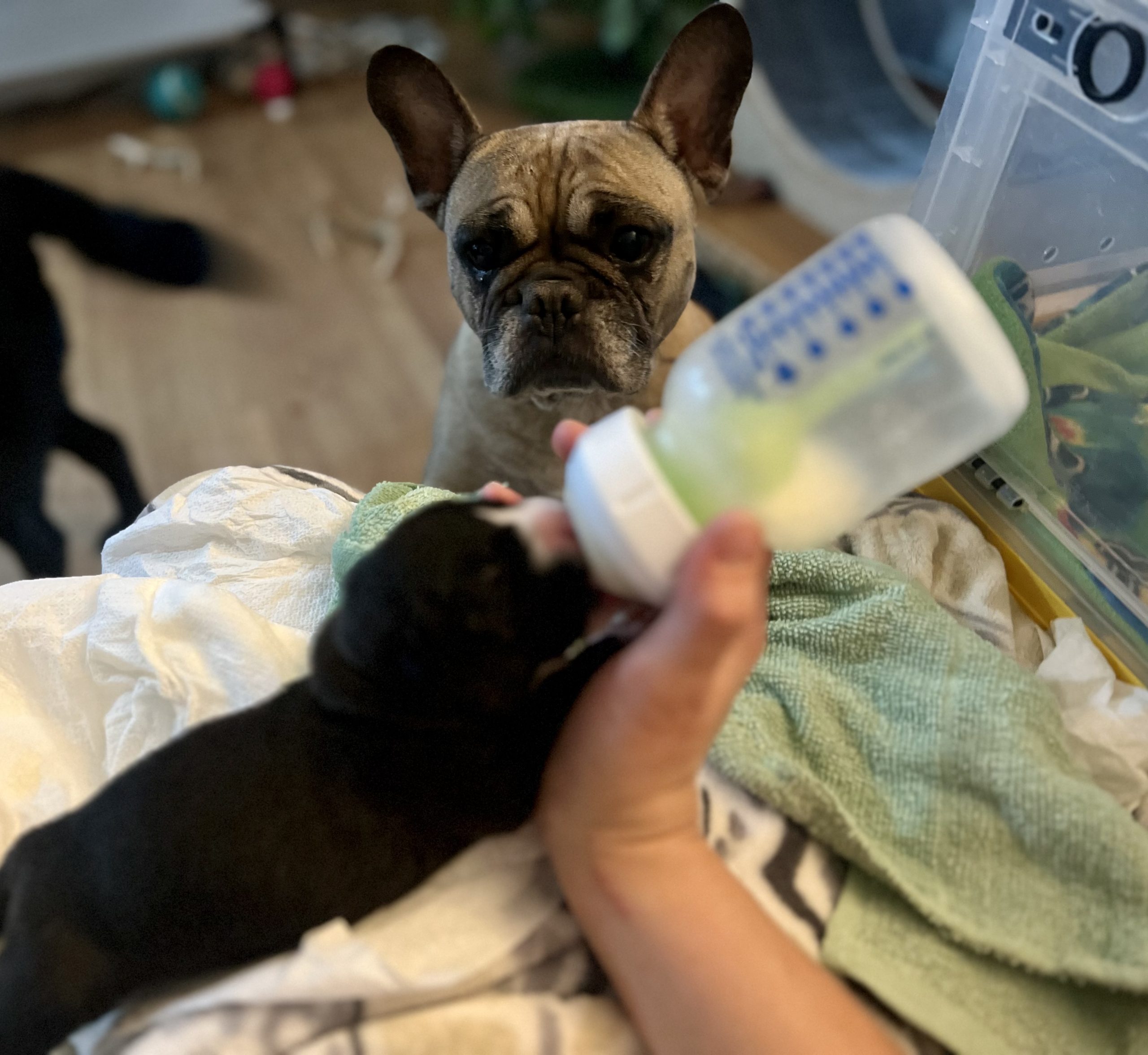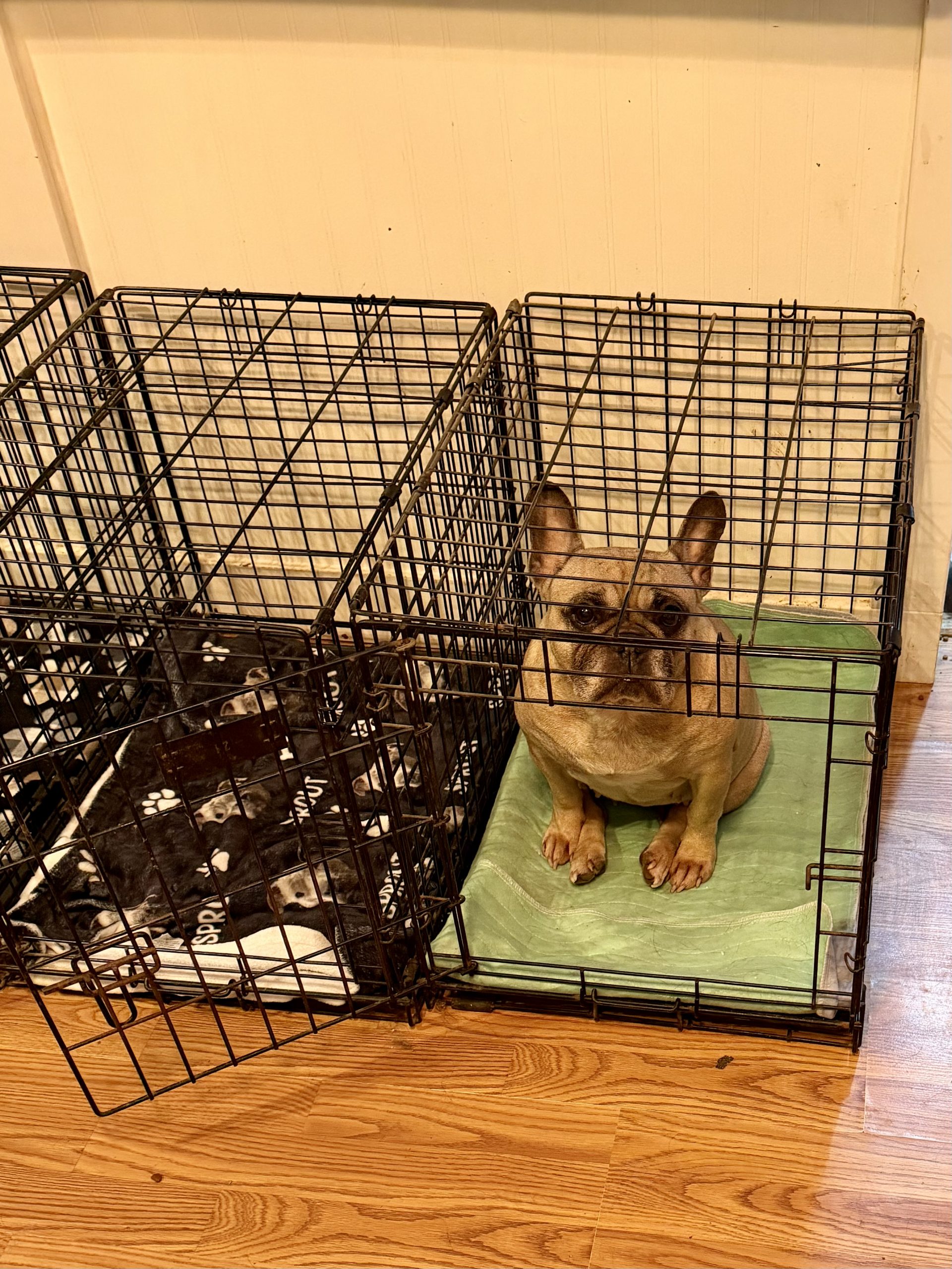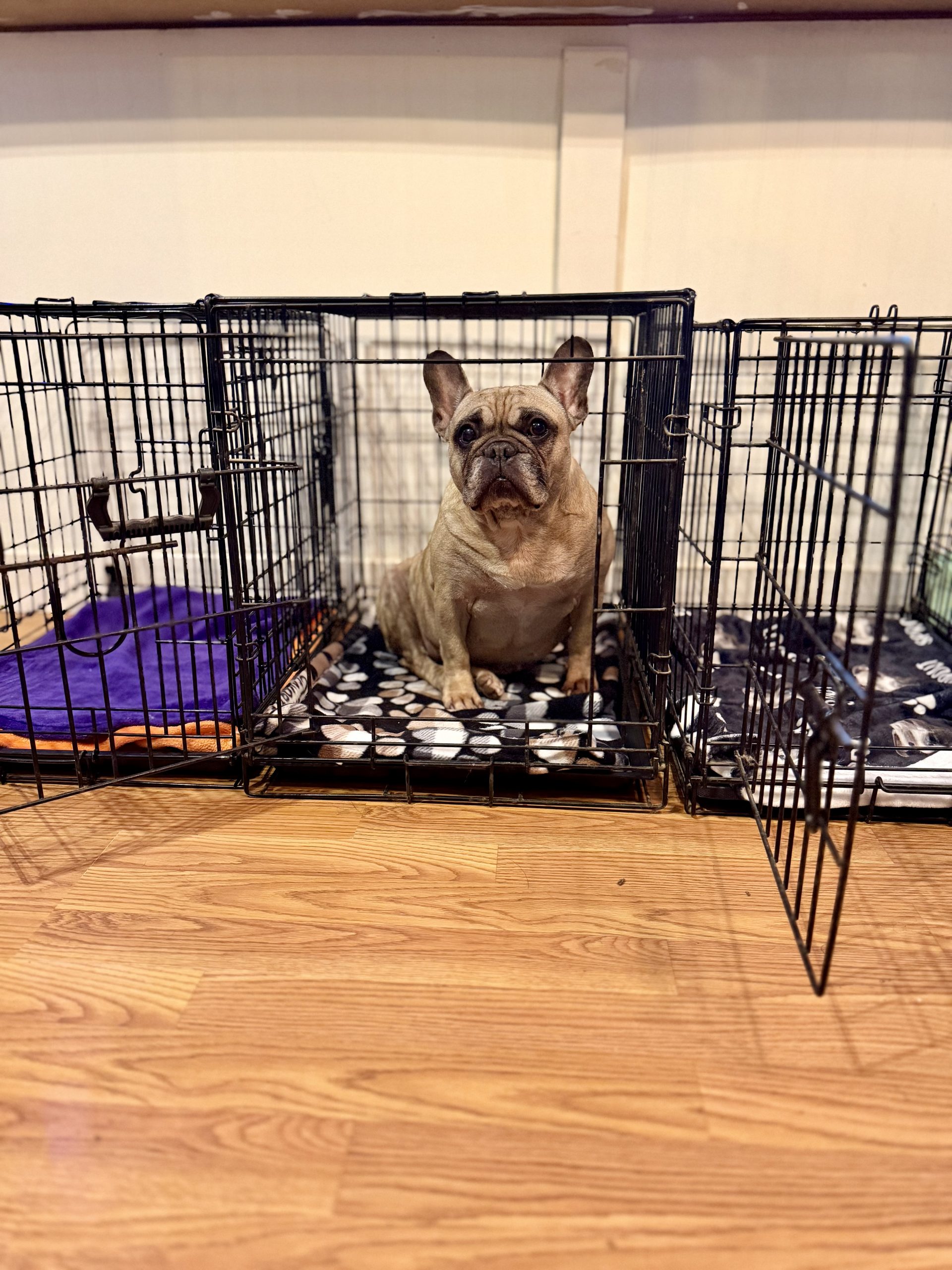 She is crate trained, seems to be basically potty trained (she is still a frenchie iykyk
